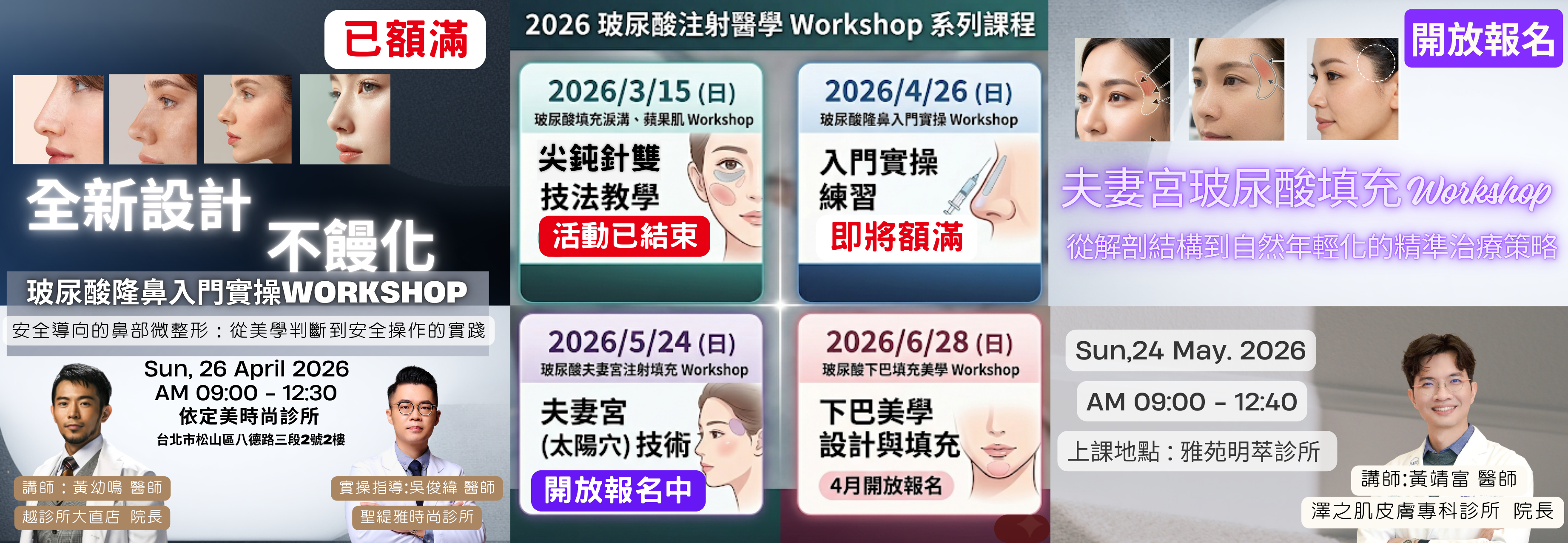 - 2026.03.20 【學會主辦_🥧】玻尿酸隆鼻入門實操workshop,玻尿酸鼻填充—實操安全入門班,給你「帶得走」的肌肉記憶