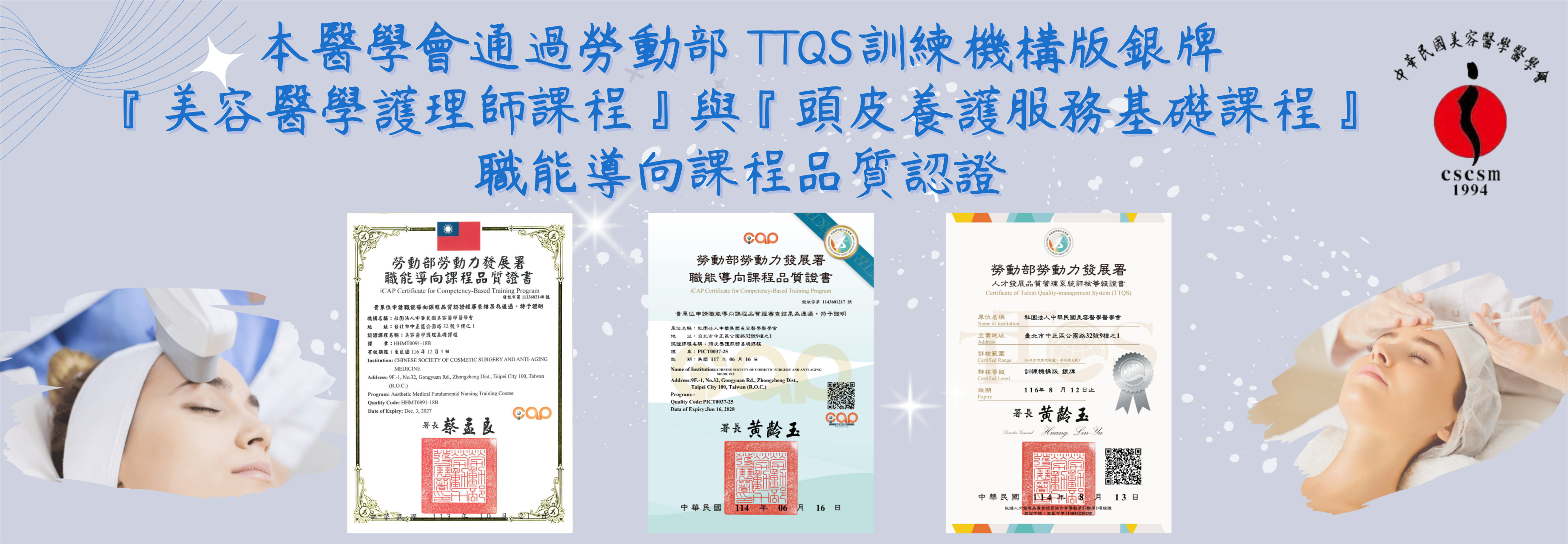 - 2026.01.22 ❤狂賀!!中華民國美容醫學醫學會榮獲TTQS訓練機構版銀牌