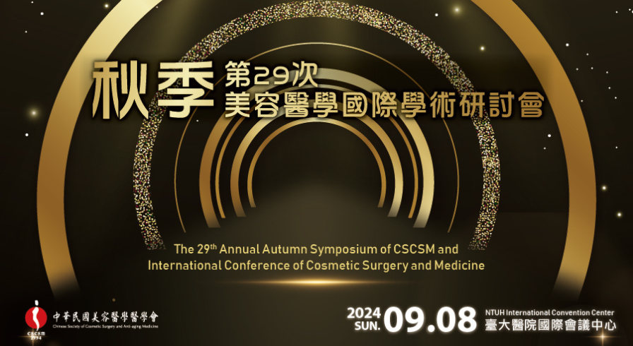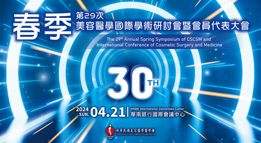 議程資訊 NEW !! 第29次春季美容醫學國際學術研討會暨會員代表大會 29th Annual Spring Symposium of CSCSM and International Conference of Cosmetic Surgery and Medicine 一、活動資訊 會議日期:2024年04月21日(日) 會議時間:09:00-17:00 晚宴時間:18:00-20:30 會議地點:華南國際會議中心2-3F(台北市信義區松仁路123號) 晚宴地點:寒舍艾美酒店宴會廳(台北市信義區松仁路38號) 主辦單位:中華民國美容醫學醫學會(內政部台內社第8312826號) 早鳥報名已截止 大會報名簡章請拉至網頁下方查看PDF檔 最新議程資訊0412官網更新!! 當日同步舉辦30周年慶祝晚宴,當中更安排精彩表演活動 敬邀各位會員一同祝福學會30歲生日快樂! 最新學分更新 本次大會為與會者申請衛福部-醫師(專業7.2分)(性平0.6)、衛福部-護理(專業5.4分)(法規0.6)、台灣家庭醫學會(6分)、皮膚科醫學會(4分)、外科醫學會(10分)、台灣耳鼻喉頭頸外科醫會(2分)、台灣肥胖醫學會(2分)台灣微整形美容醫學會(6分),學員可撥冗至學分簽到處簽署。 最新國際專場議程資訊!!