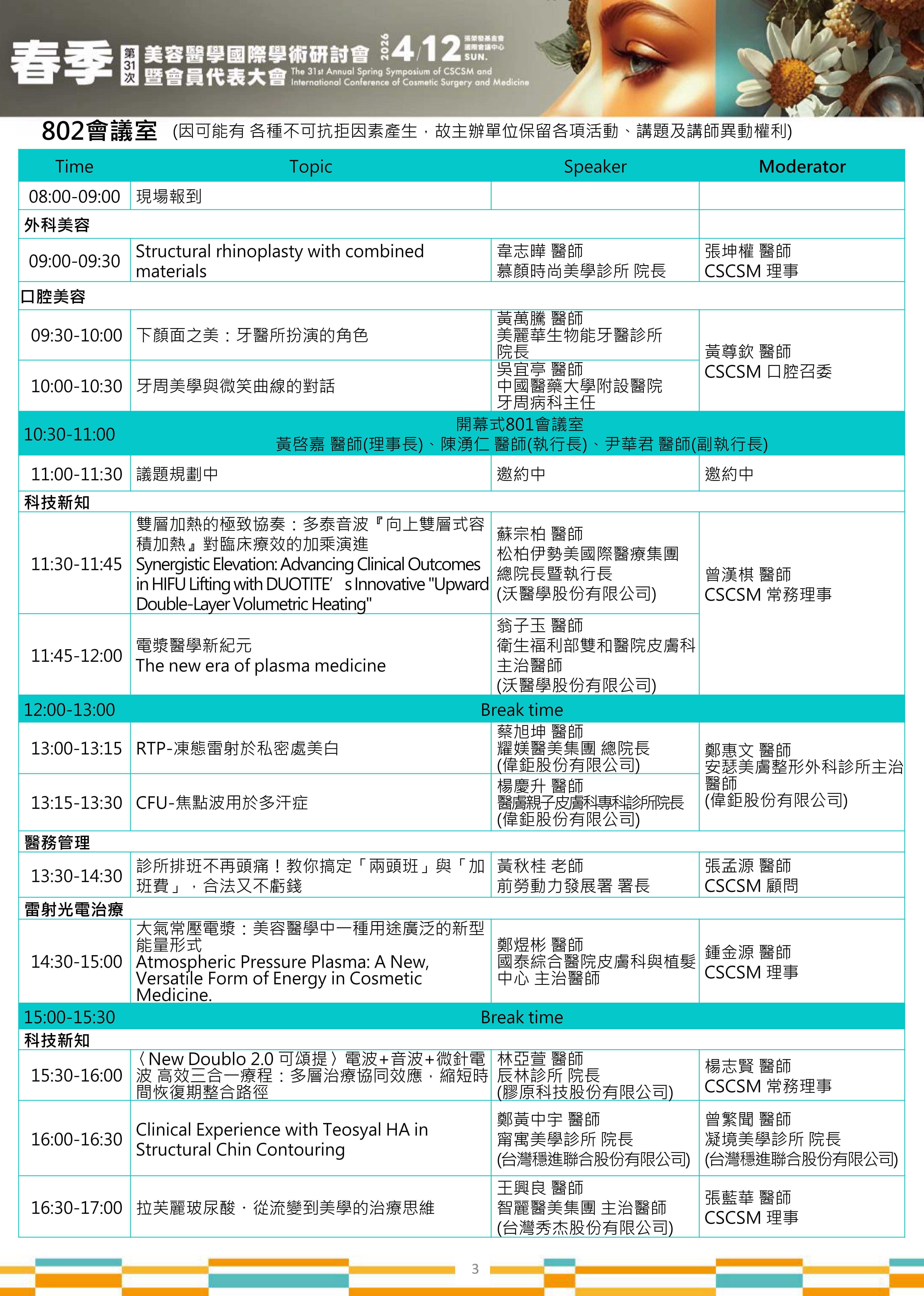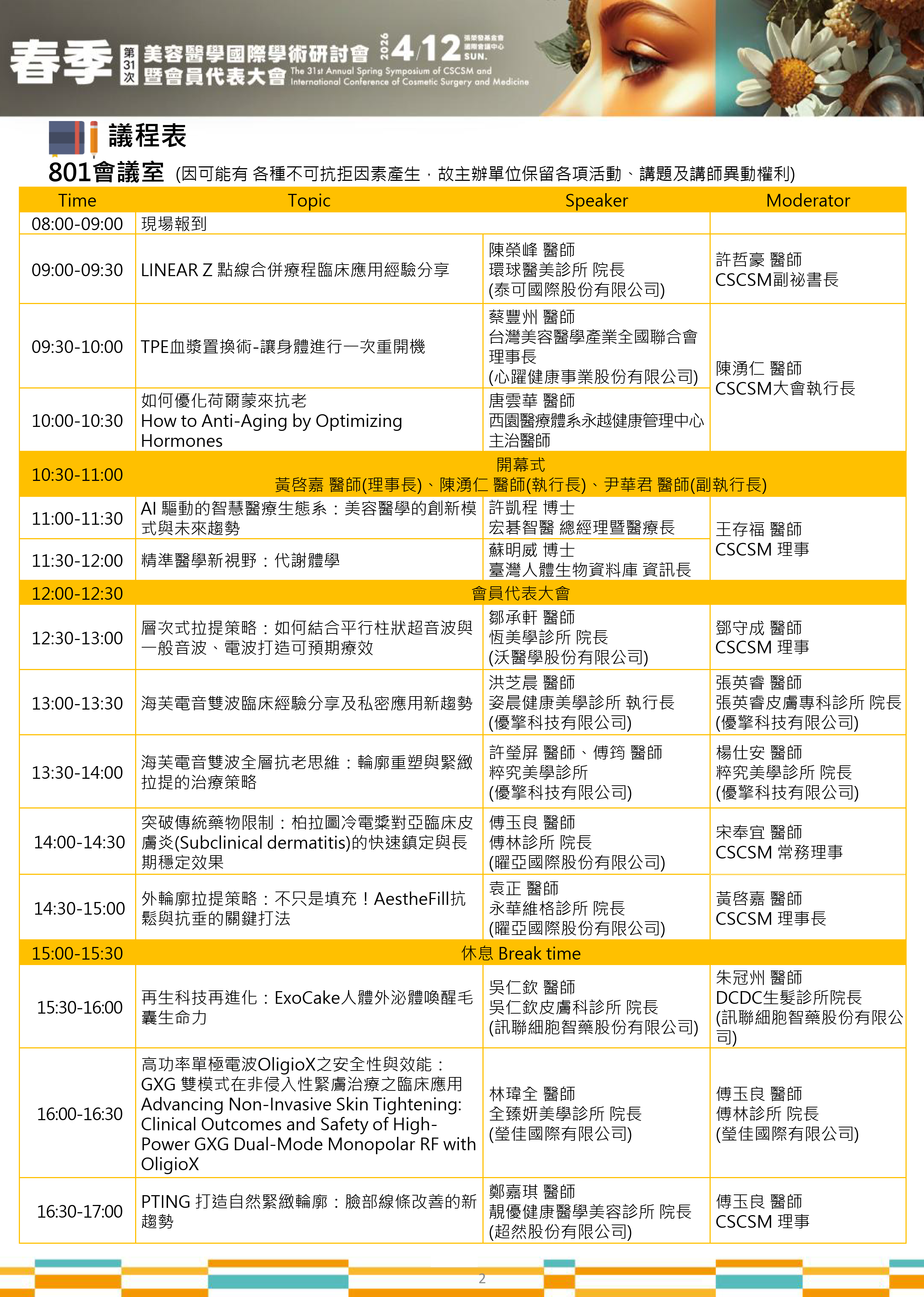 第31次春季美容醫學國際學術研討會暨會員代表大會