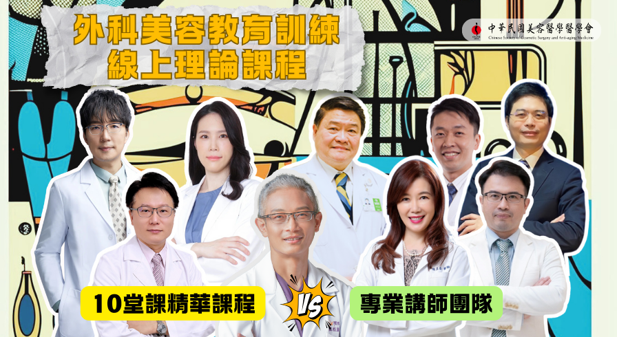 為提升本會會員醫師之權益,並匯集正確外科美容醫學知識與技巧,包含病人安全、醫療法規與機構管理等方面都需要不斷的再教育訓練。因此,本醫學特別規劃「外科美容教育訓練」,除依據會員醫師需求規劃設計外科美容教育訓練課程,同步依據「特定醫療技術檢查檢驗醫療儀器施行或使用管理辦法」第25條規定規劃,提供會員醫師符合主管機關規定之美容醫學手術專業理論知識訓練,讓會員醫師在各自專科領域之外,持續精進美容醫學手術專業訓練,提升醫療知識與醫療品質。 (☞゚ヮ゚)☞共計10堂課,有關美容外科的基礎理論 都在這個系列課程中! 編號 課程名稱 時數 (min) 醫師姓名 服務單位 課程目標 1 外科美容趨勢 30 張松源 醫師 雅丰診所 掌握美容外科發展趨勢 2 美容外科學-疤痕 30 王先震 醫師 臺北市立萬芳醫院-委託臺北醫學大學 瞭解美容外科基礎知識及傷疤治療與照護 3 從美容醫學看老化的面部結構之改變 60 鄧守成 醫師 花蓮慈濟醫院幹細胞與精準醫療研發中心 瞭解面部結構老化的美容醫學治療 4 自體脂肪移植 60 鄧守成 醫師 花蓮慈濟醫院幹細胞與精準醫療研發中心 瞭解自體脂肪移植基本理論與臨床運用 5 亞洲鼻整形手術 (特管法相關) 60 高全祥 醫師 希望美醫診所 瞭解鼻整形術適應症之術前評估、術後照護與併發症 6 下眼瞼整形手術及眼袋手術 90 陳美齡 醫師 美麗爾診所 瞭解下眼瞼整形手術及眼袋手術適應症之術前評估、術後照護與併發症 7 上眼瞼整形手術及眼眥手術 90 鄭 穎 醫師 晶華美醫診所台北旗艦店 瞭解上眼瞼整形手術及眼眥手術適應症之術前評估、術後照護與併發症 8 體雕抽脂(單次脂肪抽出量達一千五百毫升或單次脂肪及體液總抽出量達五千毫升) (特管法相關) 60 曾偉琦 醫師 萊波亞美醫診所 瞭解體雕抽脂之適應症及術前評估與處理策略 9 腹部整形 (特管法相關) 60 陳振坤 醫師 沐美診所 瞭解腹部整形手術的適應症與處理策略 10 義乳植入之乳房整形 (特管法相關) 60 魏銓延 醫師 博田國際醫院乳房醫學中心 瞭解義乳植入之乳房整形手術的適應症與處理策略 11  線上測驗   請尊重講師智慧財產權,嚴禁錄音、錄影、攝影。影片內容嚴格禁止一切側錄、重製、轉發等行為,請嚴格遵守個人資料保護法相關規定。如您違反上述約定,除有觸犯醫師法第23條、刑法第316條及個人資料保護法第41條等規定之虞,並應負相關民、刑事責任,賠償受害者及相關主辦單位因此所受之損害(包括但不限於律師費用、訴訟費用及財產、非財產上損害),本會得拒絕或暫停您觀看線上課程之權利。 ※參加對象:對外科美容有興趣並具台灣醫師執照之醫師。 ※報名方式:匯款繳費報名請填妥附件書面報名表,完成繳費手續後,回傳報名表及繳款憑證至本會。 ※費用說明:會員$10,000元/非會員$15,000元/ 會員回流訓優惠價$8,000元 ※證書類別:觀看權限開放後,請於3個月內完整觀看影片、通過課程測驗以及完成課程問卷後(測驗題及問卷將於2025/9月上架),方可取得完整d項外科美容教育訓練研習證書 ※課程時數: 10小時 ※學分:美醫會小d20學分(僅會員方能取得) ※退費辦法:完成報名並取得觀看權限後不予退費。 **主辦單位保有修改、變更活動內容之權利,如有未盡事宜,悉依主辦單位相關規定或解釋辦理,並得隨時補充公告之。**