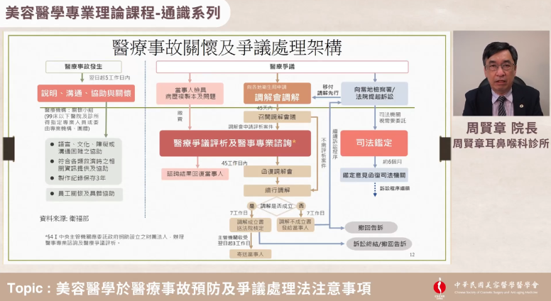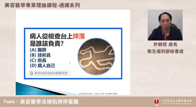 美容醫學治療涵蓋針劑注射、光電治療及外科美容等多元領域,其中涉及諸多相通的臨床基礎專業與法規議題,亦是跨醫療專科的學門,為強化美容醫學專業人員進入美容醫學臨床前,可以更掌握美容醫學的基礎學理理解,本醫學會特別規劃「美容醫學專業通識教育訓練」,邀約各方專家講解美容醫學法規、感染管控、產業趨勢及醫病關係等關鍵課題,作為進入美容醫學領域的專業基礎,並為未來欲考美容醫學專科醫師前的必修課,增進日後進修微創注射、雷射光電治療、外科美容甚至是目前受到矚目的抗衰老及再生醫療等課程時更能觸類旁通,系統性地掌握專業知識。